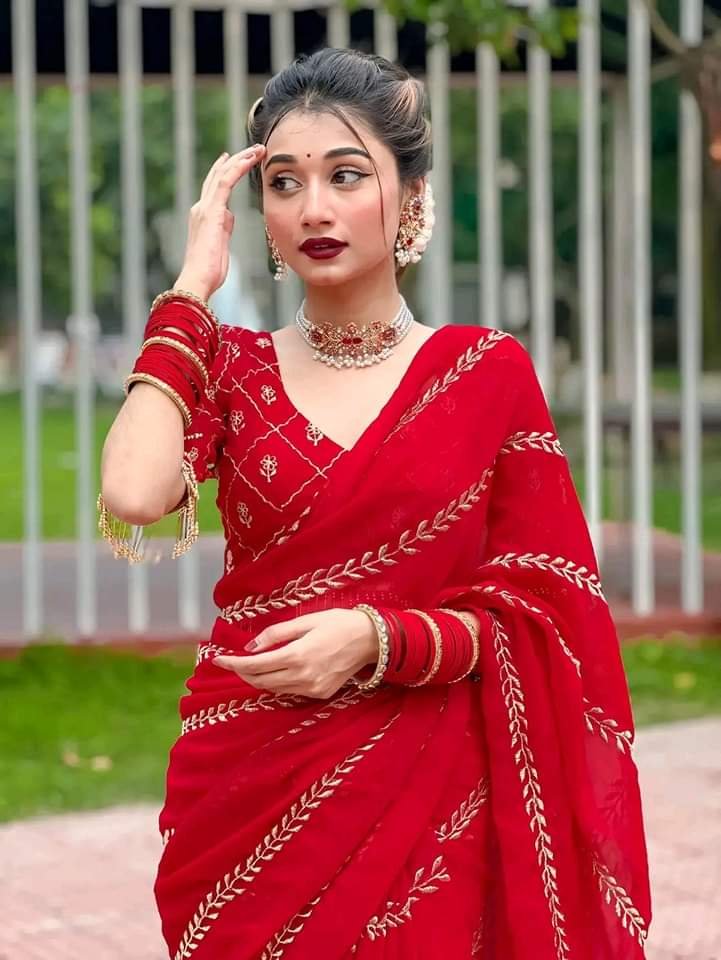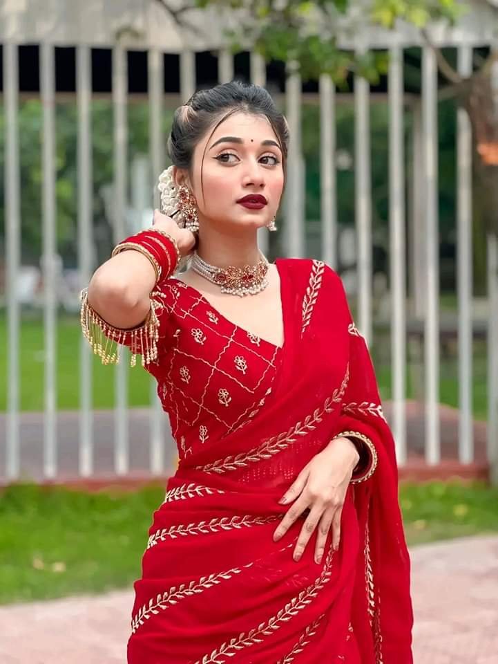 প্রিমিয়াম শাড়ী + ব্লাউজ পিস (লাল-কালার)