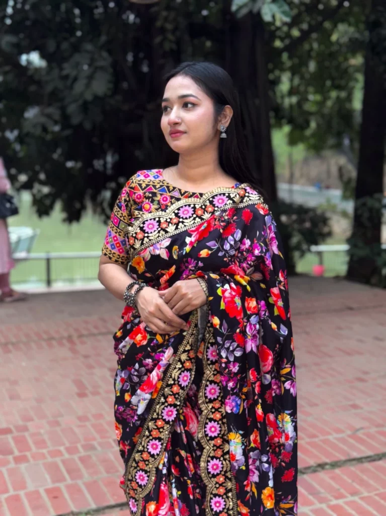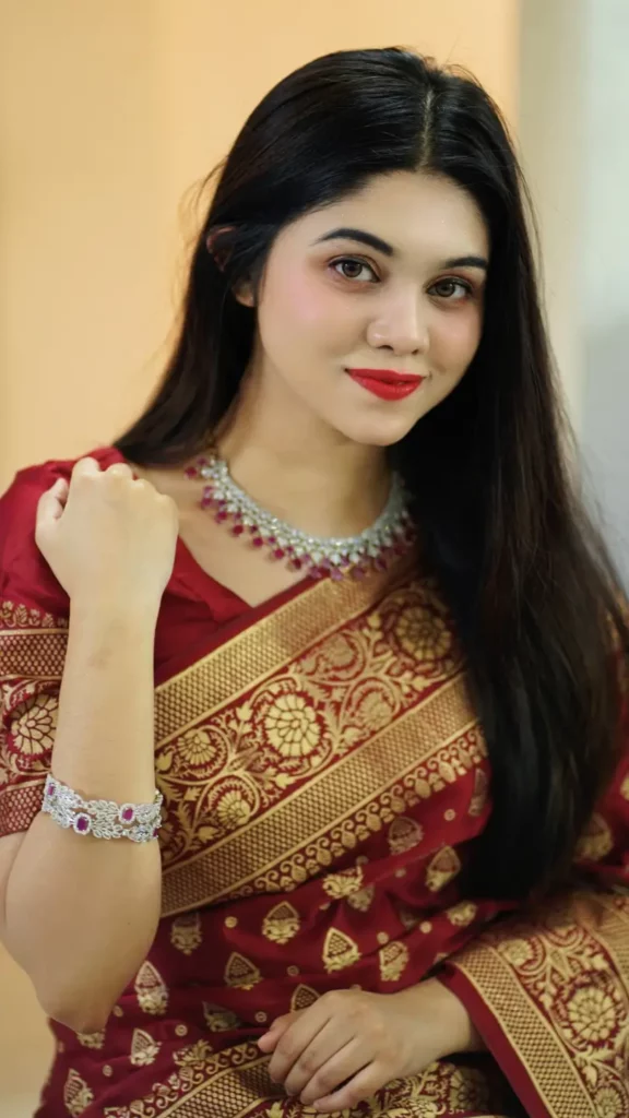 প্রিমিয়াম ইন্ডিয়ান সিল্ক পার্টি শাড়ী + ব্লাউজ পিস (Code#NB-25)